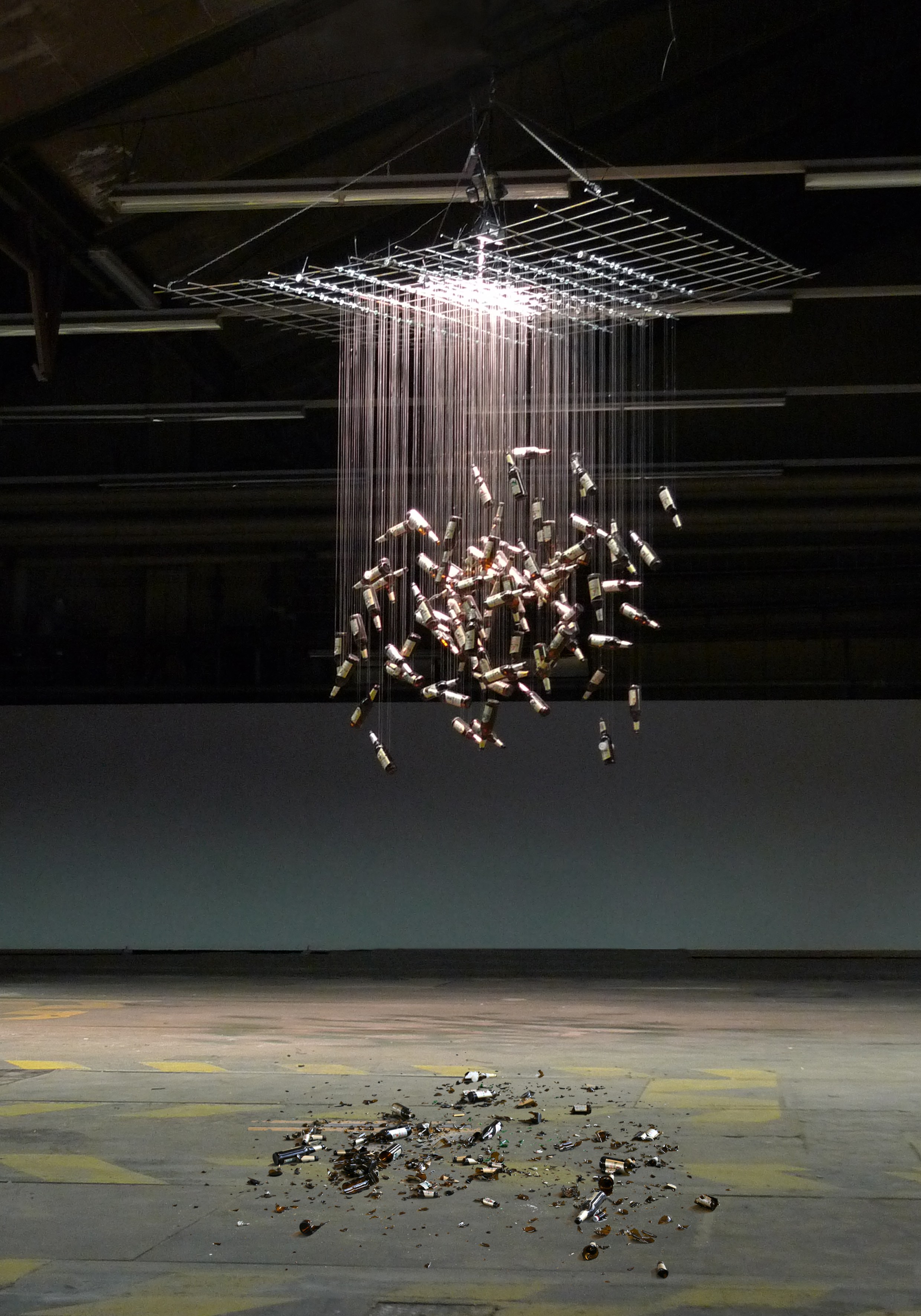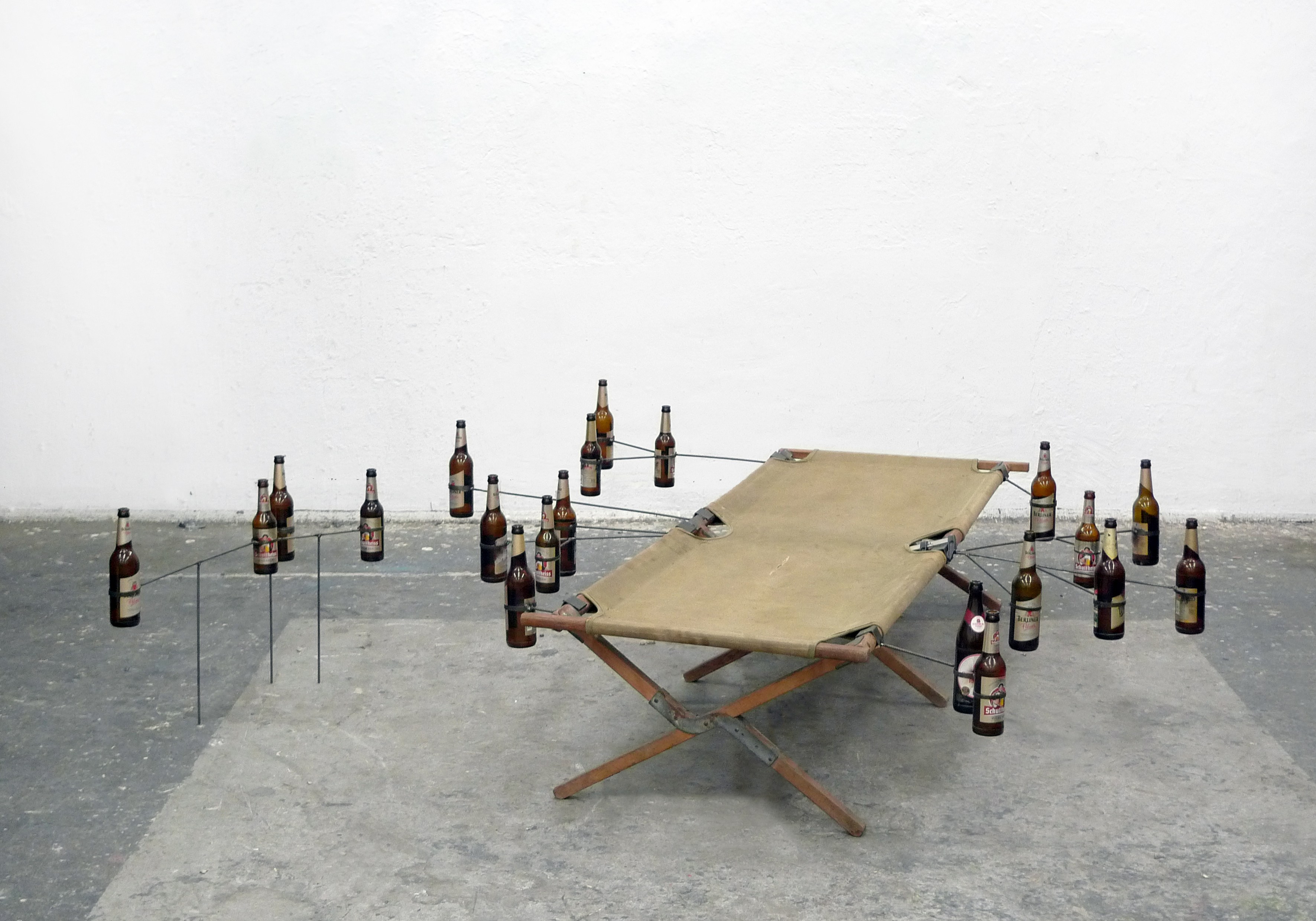 Fieldbed, steel, beer bottles