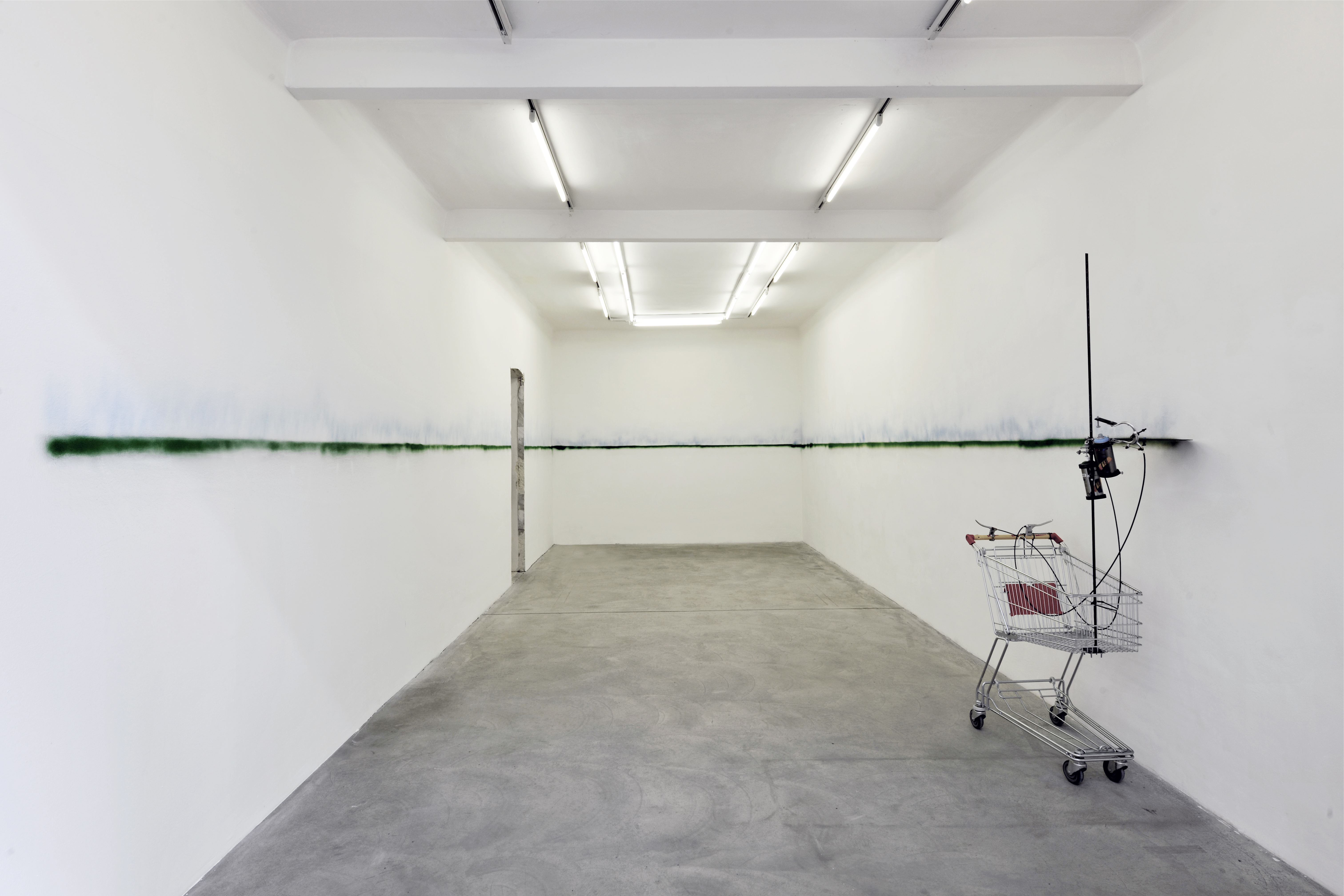 Wall, spray cans, shopping trolley,