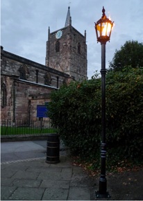 Street lamp, string, car wheel, fire
